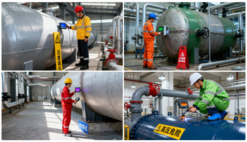 - 安全附件校驗:檢測安全閥壓力表等保護裝置