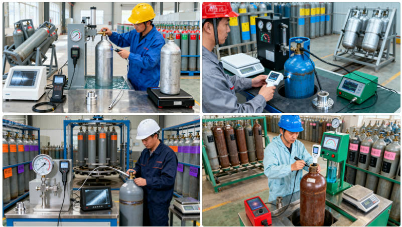 - 泄漏檢測:使用氣體探測儀或浸泡法等方法檢測氣瓶是否存在泄漏現象。
